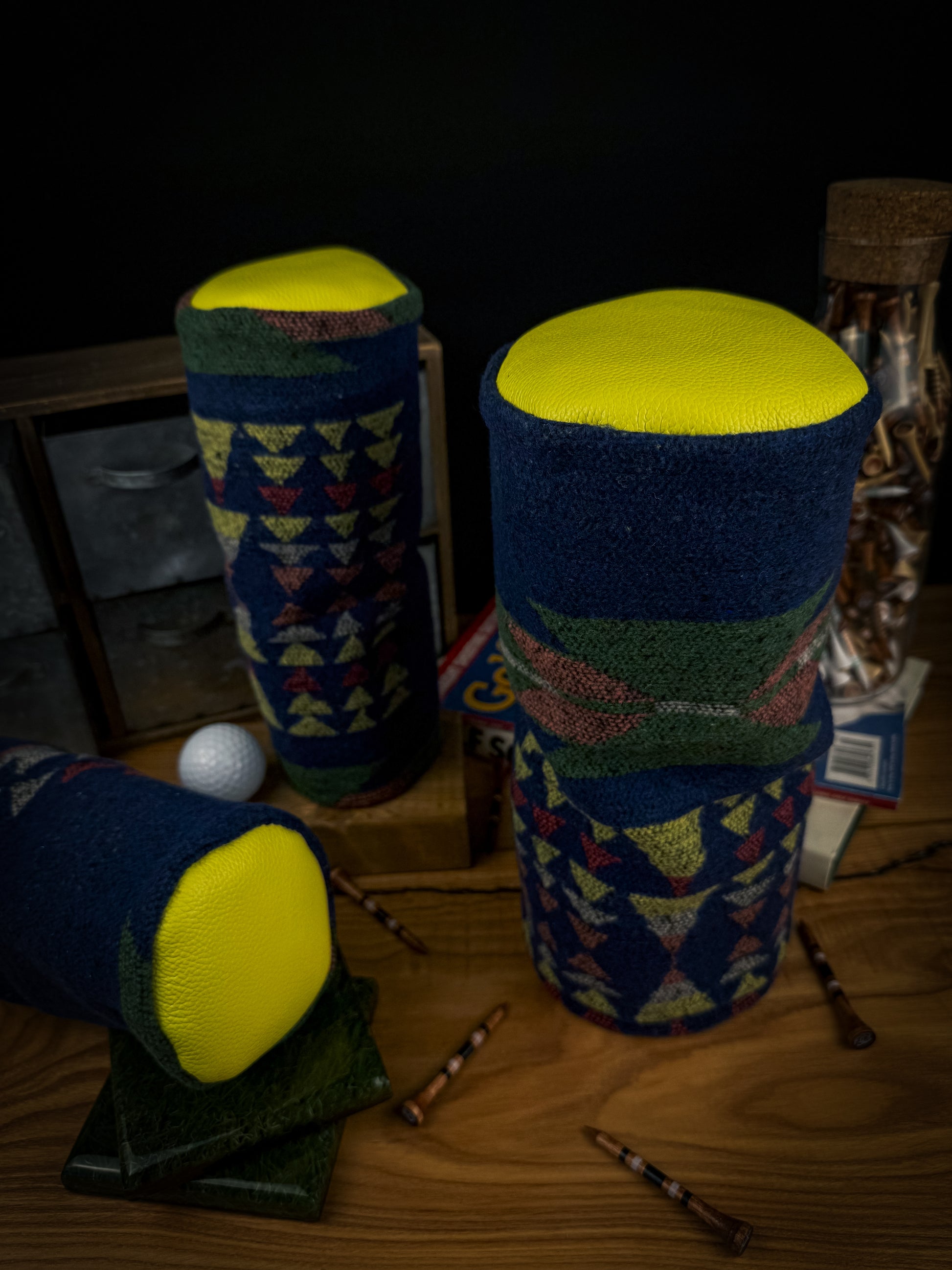 Introducing our luxurious Barrel Style Golf Headcover, expertly crafted to elevate your golfing experience with both style and protection. This headcover features a sophisticated wool exterior that exudes classic elegance, while the genuine leather top accent adds a touch of timeless refinement. Designed to fit snugly over your clubs, the headcover boasts a plush minky interior, ensuring your clubs are cushioned and safeguarded against scratches and dings. Its barrel shape provides a secure fit and easy removal, making it a practical yet stylish addition to your golf gear. Whether you're on the fairway or in the clubhouse, this wool and leather headcover is the perfect blend of functionality and fashion for the discerning golfer.